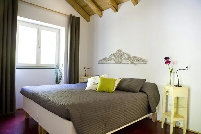 Collegata all’inizio dell’estate e al suo calore, sprigiona energia a cominciare dal rosso del pavimento e dalle suggestioni arabe del bagno. Stanza doppia o matrimoniale con due posti letto aggiuntivi.